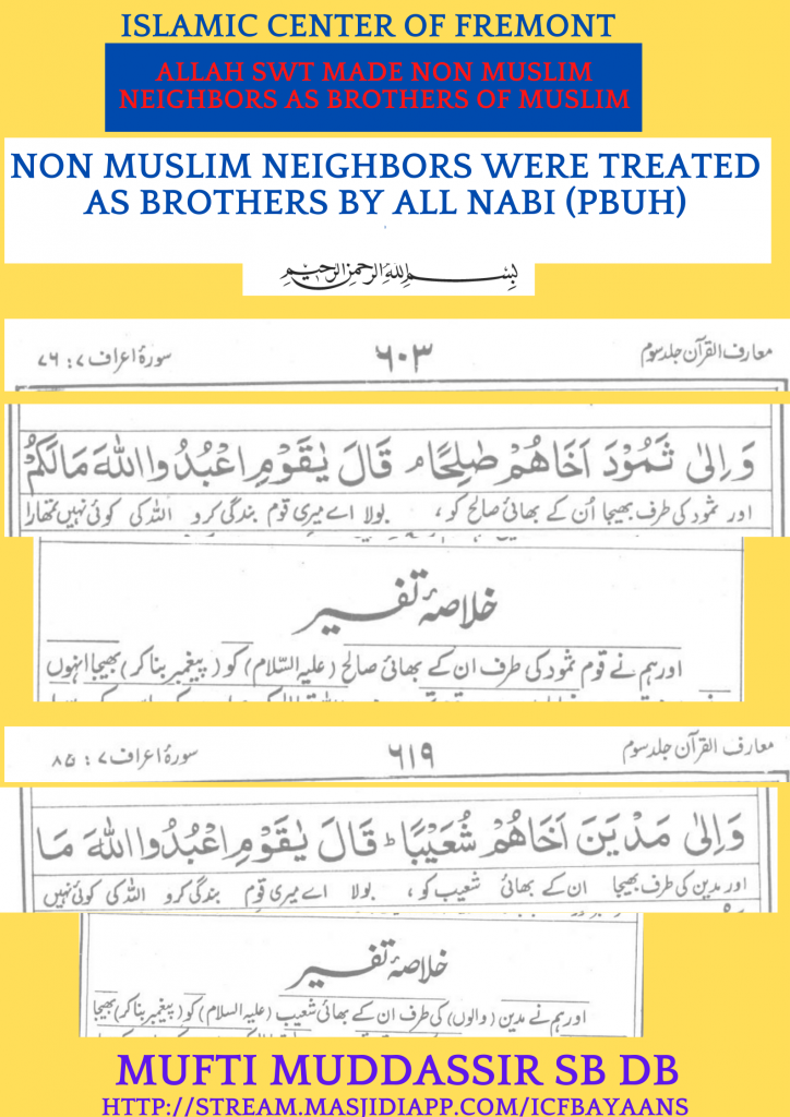Short Audio: Every Nabi ﷺ considered his followers as brothers. Non Muslims neighbor are like brothers. Posted on January 29, 2023February 2, 2023 by mukarramn1
