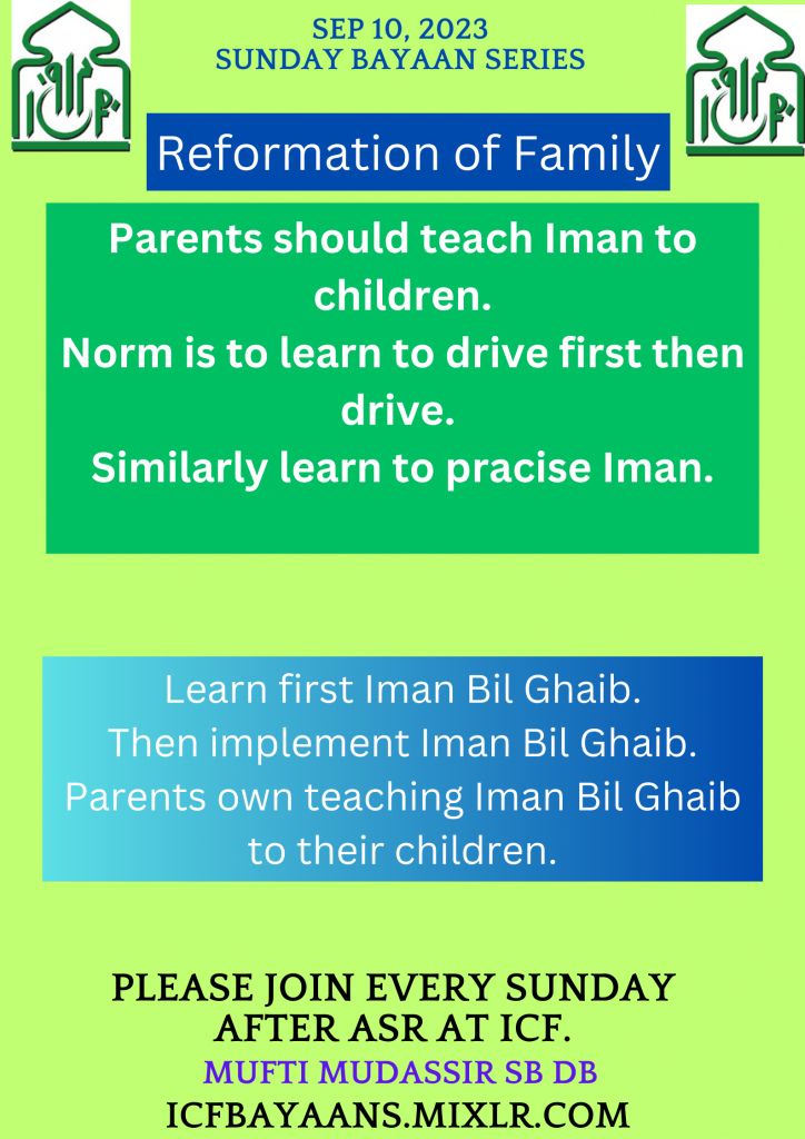 Reformation of Family – Learn to practice Iman – Part 3 – Aug 27, 2023 Posted on September 10, 2023September 23, 2023 by mukarramn1