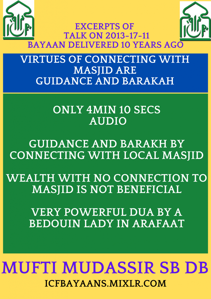 Virtues of Connecting with Masjid – Guidance and Barakah in wealth/income etc. Posted on December 11, 2023 by mukarramn1